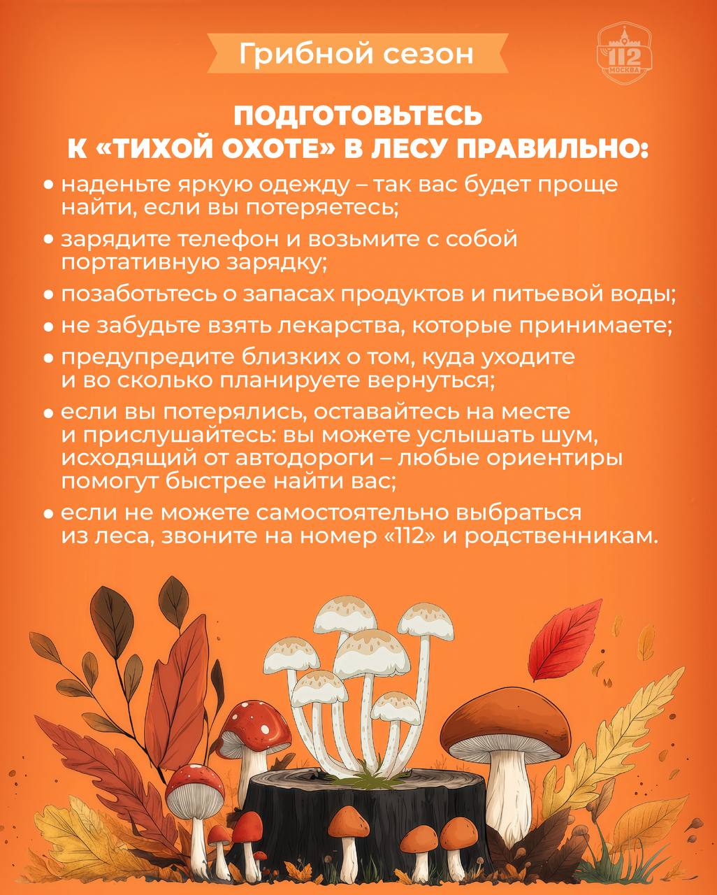 Осень – прекрасная пора, когда погода радует последними погожими днями, и многие стараются в выходные выбраться на природу. Именно в это время в Службу 112 Москвы всё чаще поступают «грибные» вызовы.