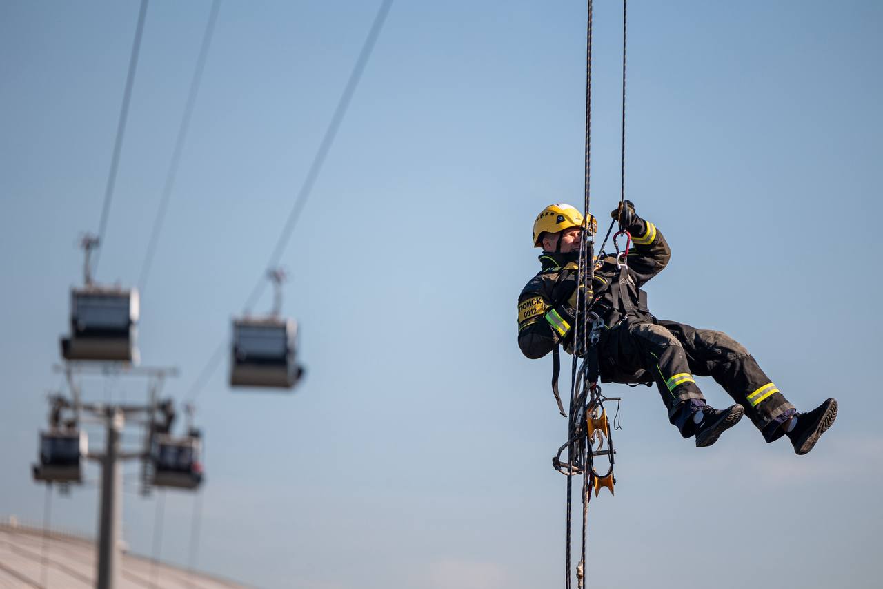 Масштабные тактико-специальные учения проходят на канатной дороге, как правило, дважды в год. Помимо этого, спасатели столичного Пожарно-спасательного центра в течение года проводят различные занятия на этом инфраструктурном объекте. Регулярные тренировки позволяют спасателям: