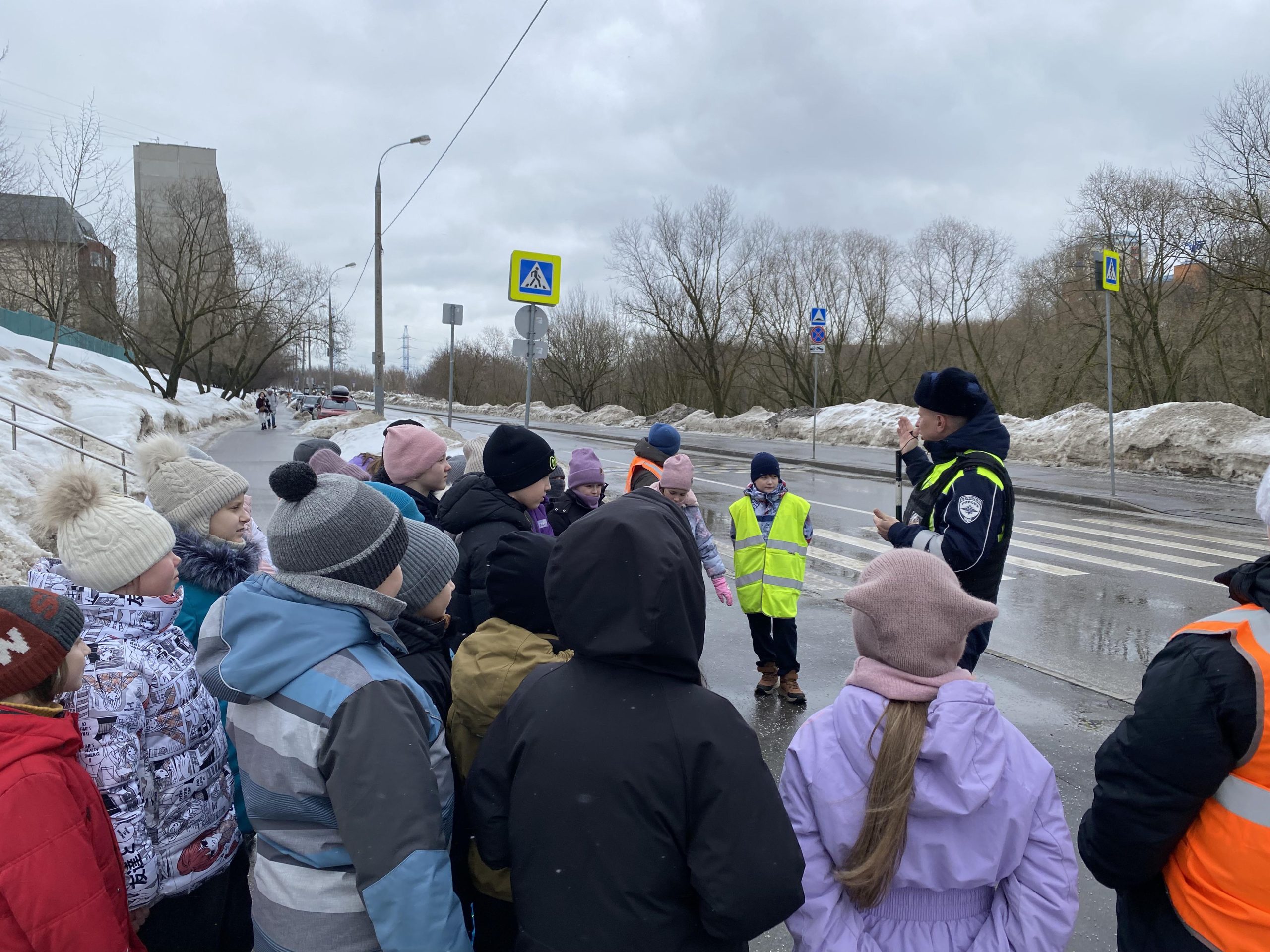 Главная цель данной экскурсии – профилактика детского дорожно-транспортного травматизма и пропаганда безопасного поведения на дорогах. Юным пешеходам были продемонстрированы правила безопасного поведения на нерегулируемом пешеходном переходе, объяснили и показали на примере пешехода, почему так важно остановиться перед проезжей частью и убедиться, что все машины остановились и пропускают пешехода, а также почему необходимо снимать капюшон, который загораживает угол обзора и мешает оценить дорожную обстановку.