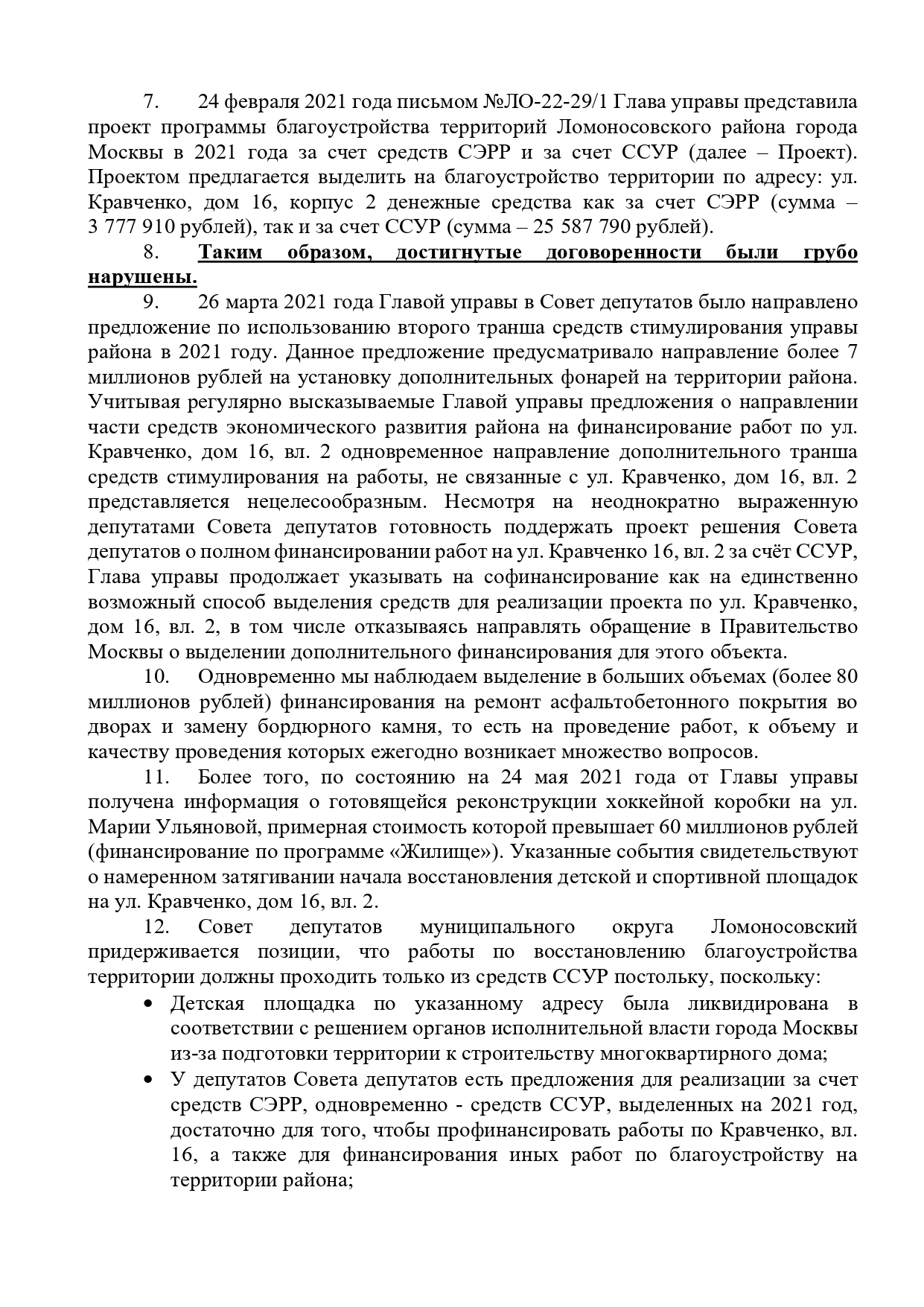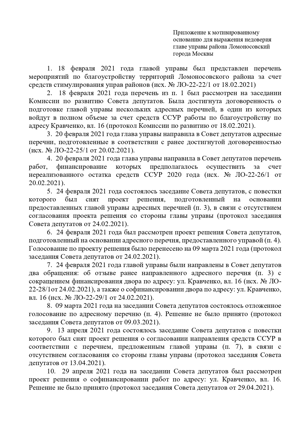 Основанием для обращения, как это указано в приложении, послужила ситуация с благоустройством двора по адресу: ул. Кравченко, 16, вл. 2.