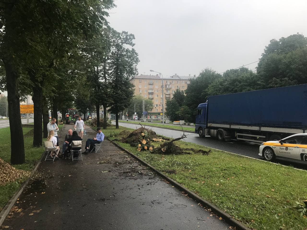 Сегодня в Ломоносовском районе в сквере у парка «Надежда» в районе домов №82–86 на Ленинском проспекте начались работы по вырубке деревьев. Этот участок размером 15,79 Га не является частью сквера, но имеет правовой статус природного комплекса категории озелененной территории специального назначения*.